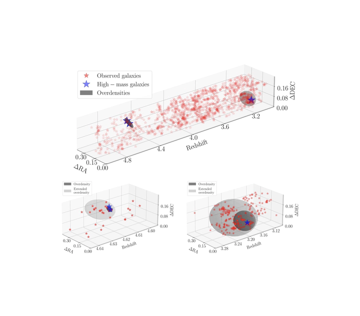 In a way, this reflects the thoughts of the original discover of the extreme ZF-UDS-7329, Karl Glazebrook, who suggested that we may be missing something about halo physics that makes dark matter collapse faster early on — a seemingly radical idea. However, this is actually exactly what happens in extreme overdensities, halos collapse earlier and grow faster than in average areas, so in a way, Prof. Glazebrook was right!