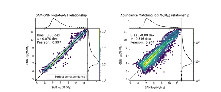 Learning Baryonic Physics from Complete Merger Histories @CCA Mar 18, 2022 Code Project True-Predicted plot when using our model (left), and the traditional Abundance Matching approach (right), for regressing stellar mass Invited Christian Kragh Jespersen PhD Candidate in Astrophysical Sciences My research interests are at the intersection between Machine Learning, galaxy formation and evolution, big surveys, and cosmology